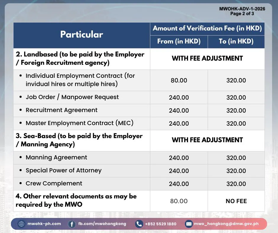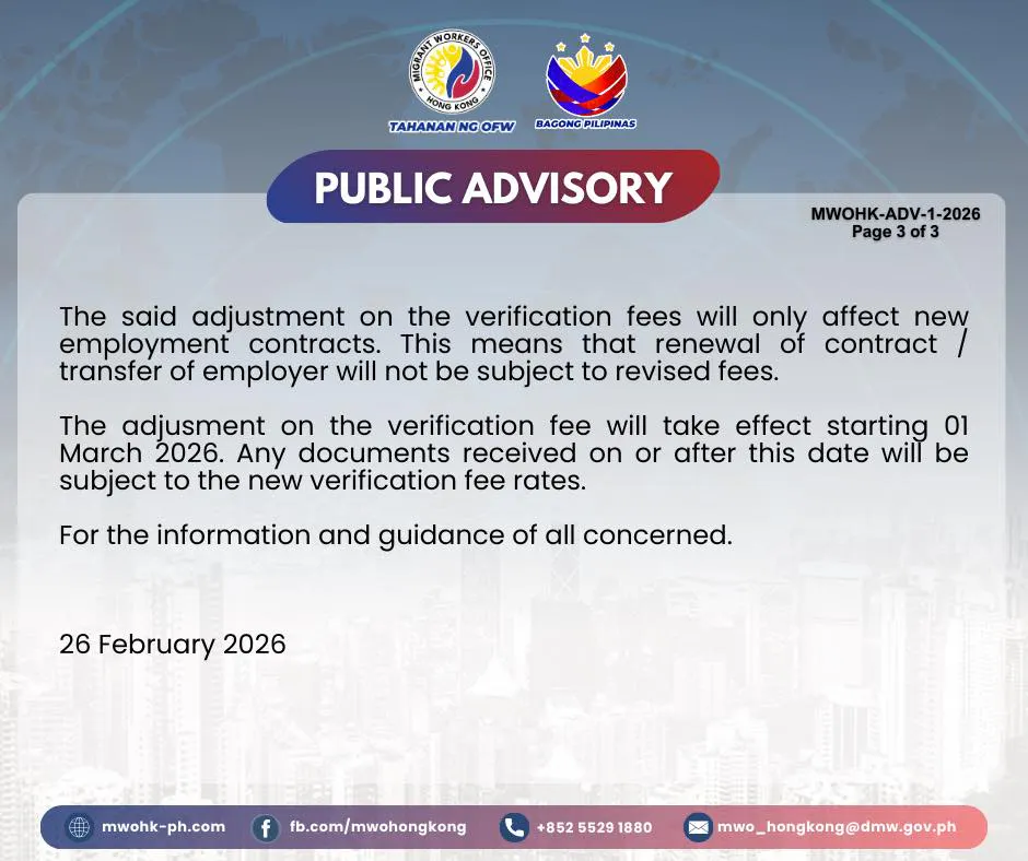 自2026年3月1日起,香港菲律賓領事館將實施新的公證收費: