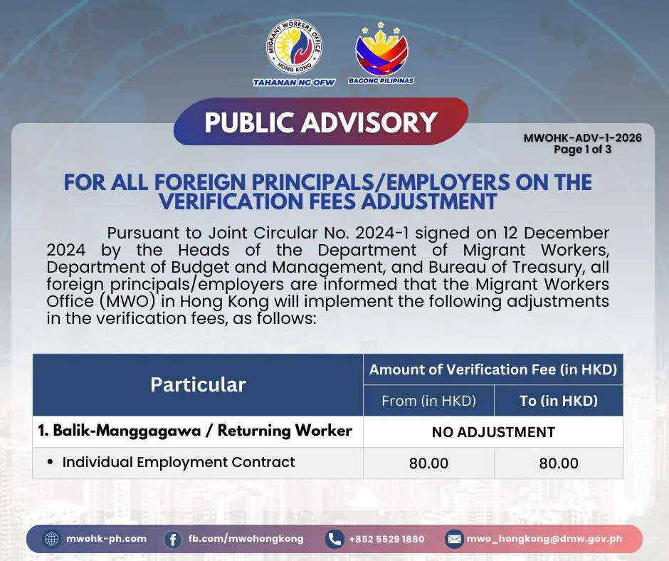🔹 合約續約及本地外傭轉換僱主(本地簽證) :$80 維持不變;🔹 新聘合約(海外簽證) :上調至 $320